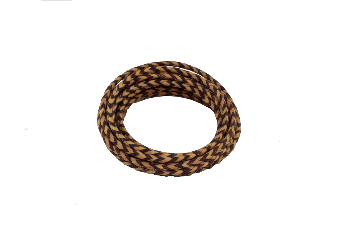 Chamada de Waryma Kaha, essa pulseira de arumã é confeccionada pelas mulheres do povo Waimiri Atroari e é utilizada para proteger o pulso contra o impacto da corda do arco e como enfeite corporal.